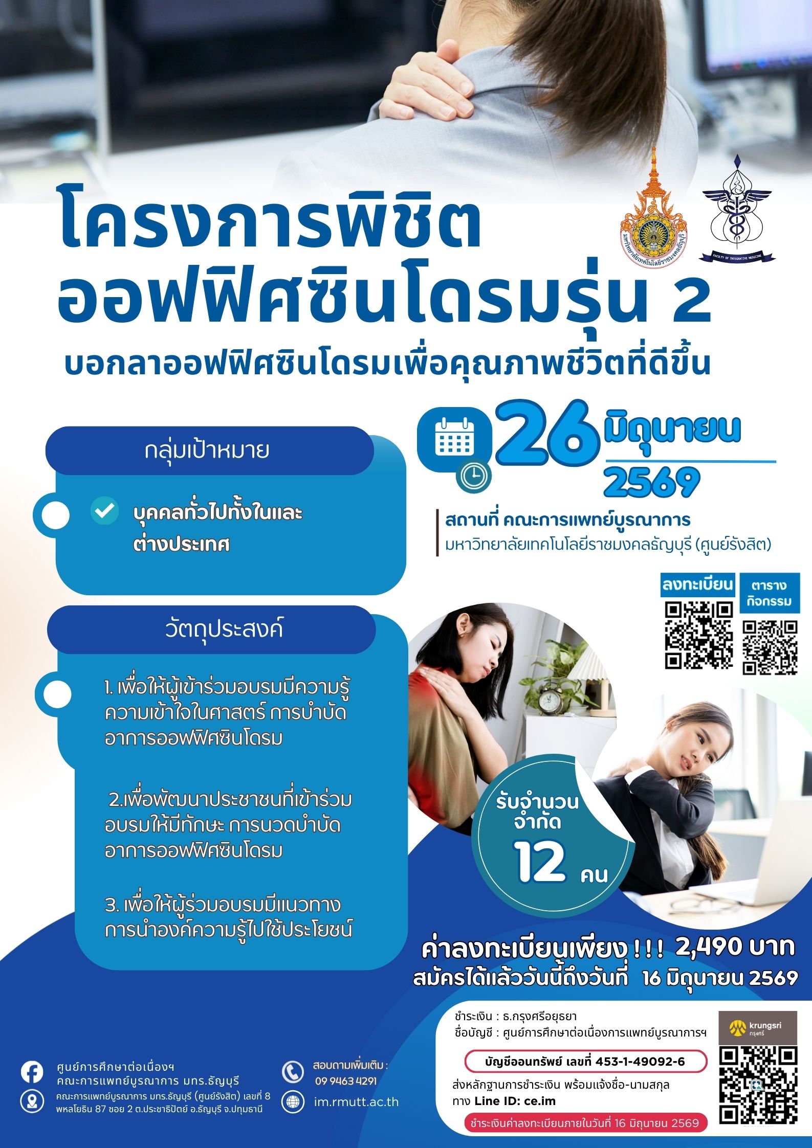 ขอเชิญเข้าร่วมโครงการพิชิตออฟฟิศซินโดรม รุ่นที่ 2 วันที่ 26 มิถุนายน 2569